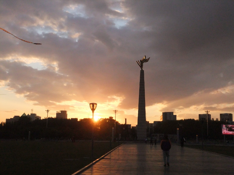 有人在广场上放风筝...